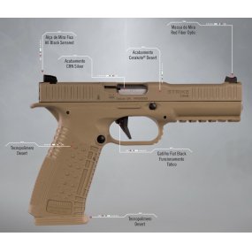PISTOLA REVINT - STRIKE ONE - CAL. .380ACP - 17+1 TIROS (2 CARREGADORES) - CERAKOTE - CANO 5” - SEMIAUTOMÁTICA - PESO GATILHO 2.5KG - ITÁLIA
