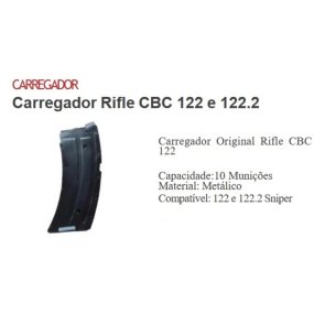 Carregador p/ Rifle CBC - Cal. .22 LR - 122 e 122.2 Sniper - 10 Tiros - Metálico