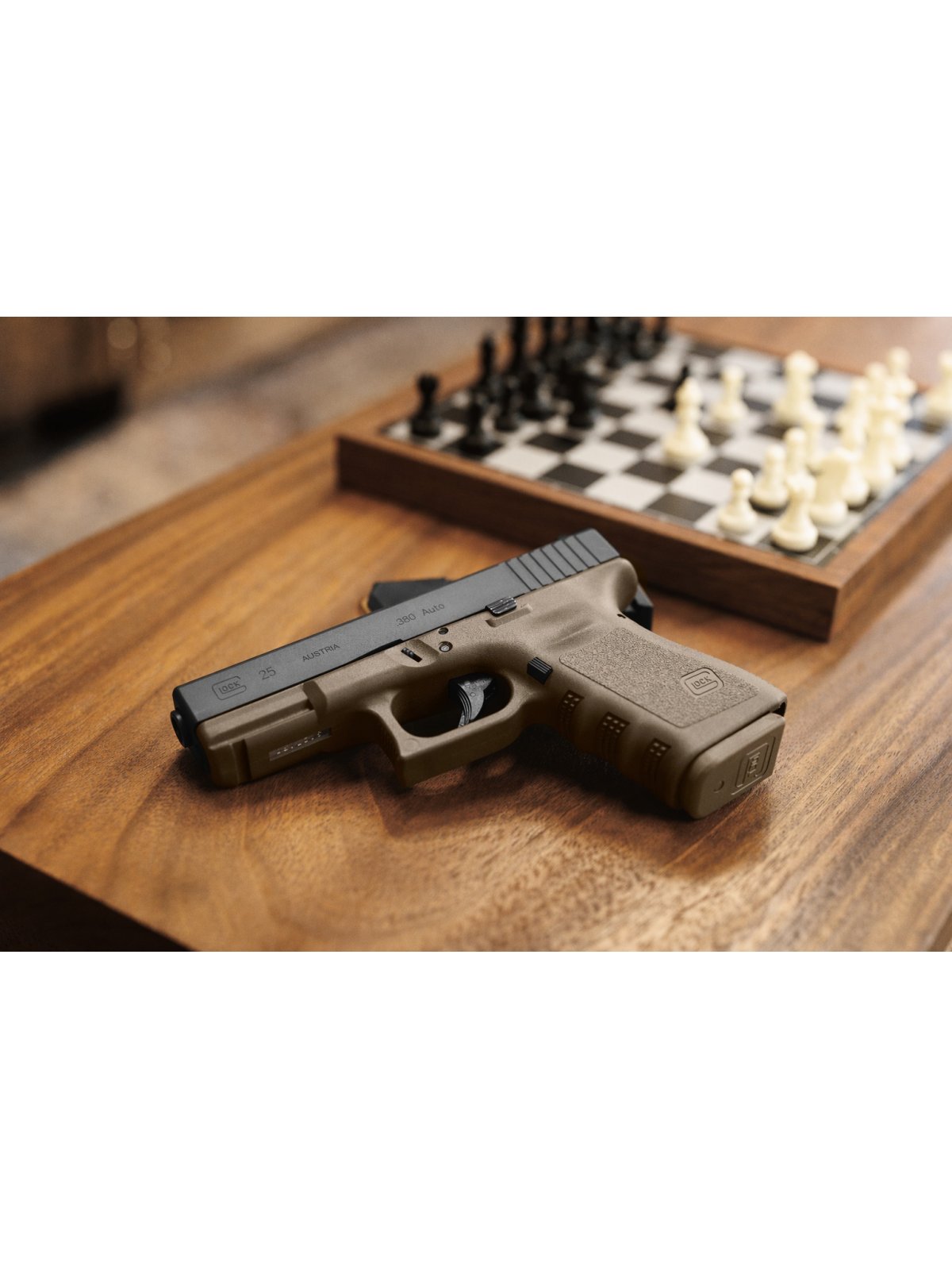 A Glock G25 FDE (Flat Dark Earth) Edição Limitada combina a consagrada confiabilidade da plataforma Glock com um acabamento exclusivo, oferecendo alto desempenho, ergonomia e controle superior em um design moderno e diferenciado.